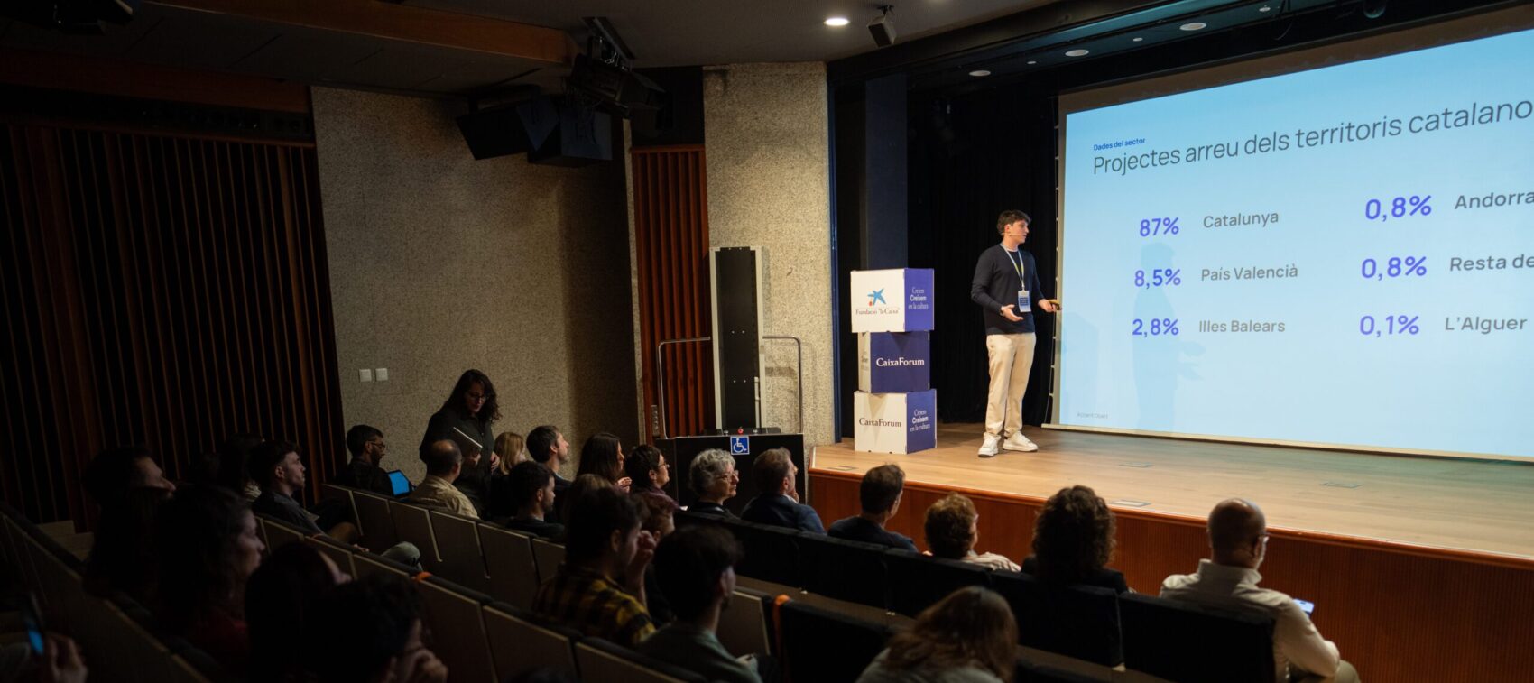 Un dels moments destacats del cap de setmana va ser la intervenció de Sergi Céspedes, responsable de projectes d’Accent Obert, que va presentar una actualització de l’estat del sector de la creació digital en català.