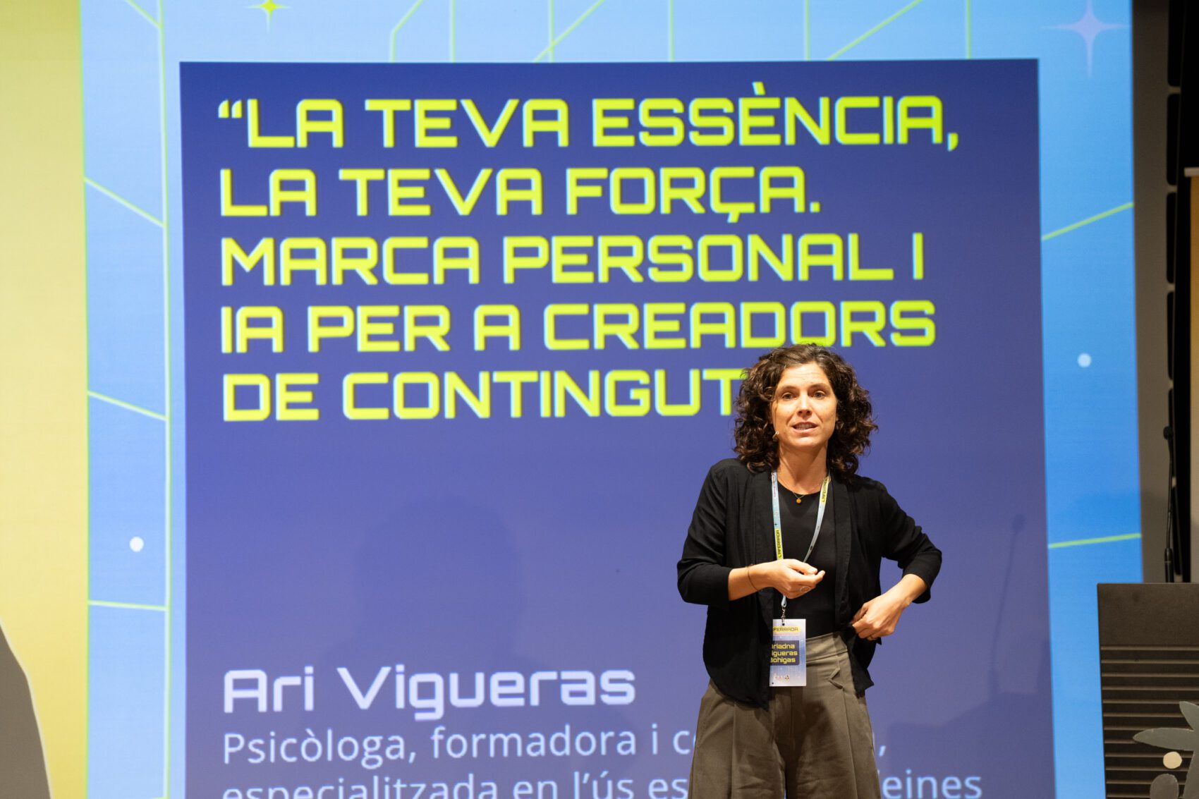 Durant dues jornades, L’Aferrada ha combinat ponències, debats, tallers i espais de connexió entre creadors i agents del sector audiovisual i digital. Hi han participat representants de 3Cat, Mediapro Studio-Catalunya, IB3, Catalunya Ràdio i Caixaforum+, a més de figures destacades del màrqueting i la comunicació digital com Jordi Urbea (Ogilvy Espanya), Àngels Bardina (Col·legi del Màrqueting i la Comunicació de Catalunya) i Ari Vigueras (consultora i formadora especialitzada en IA), amb la seva ponència sobre marca personal i IA.