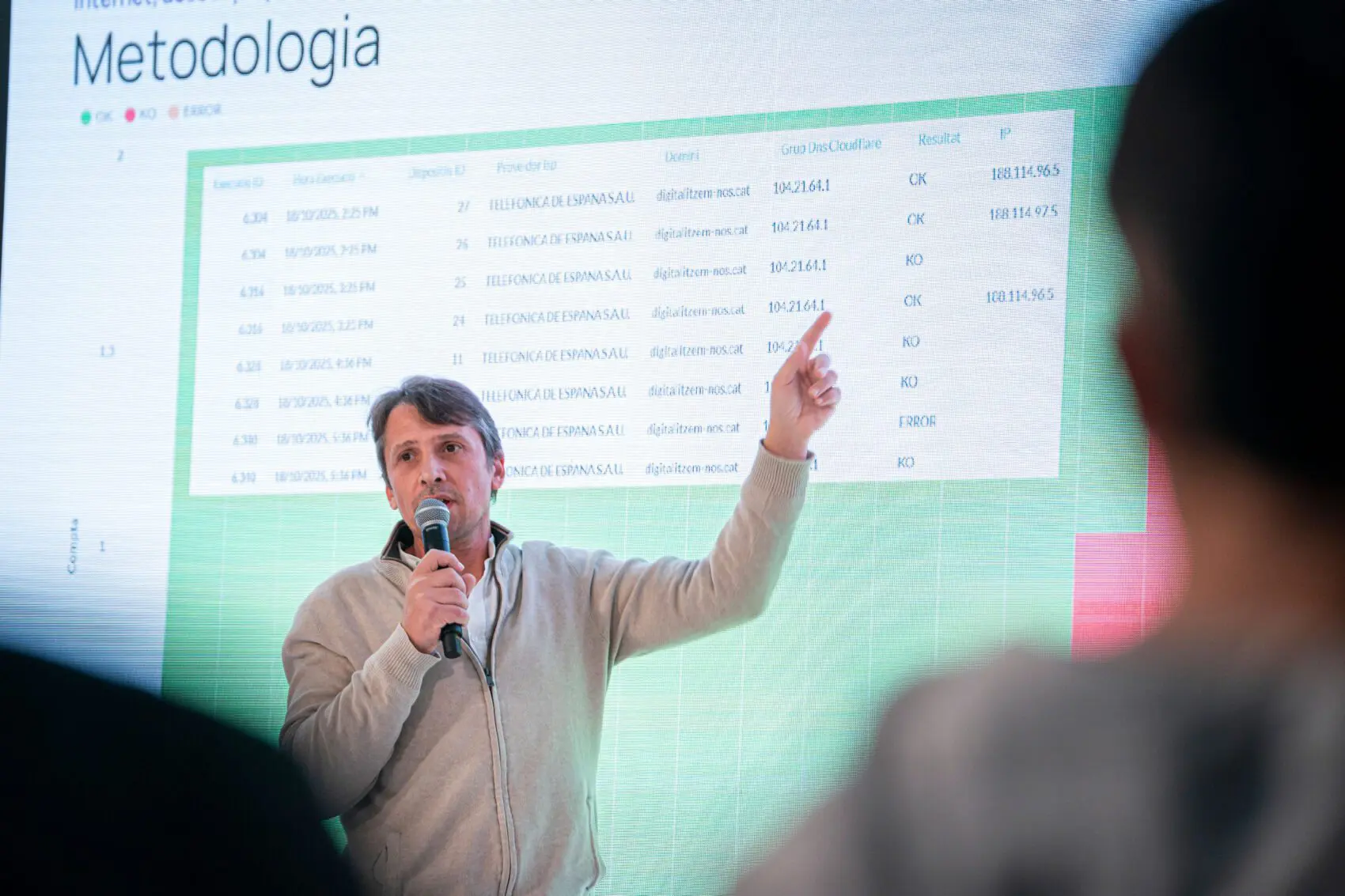 L’equip de tecnologia d’Accent Obert va presentar una de les iniciatives més rellevants del seu àmbit d’acció: el seguiment dels bloquejos de pàgines web per part de LaLiga, a través de la Xarxa de Monitoratge del Català Digital (XMCD).